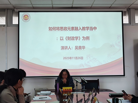 为进一步提升专业教学质量,推动教育教学改革实践,2025年11月26日,伟德国际1946组织开展“名师名课示范观摩”教研活动。此次活动邀请伟德国际1946资深教授吴美华教师为全院教师带来题为《如何将思政元素融入教学当中:以《财政学》为例》的示范讲座。活动由伟德国际1946党委书记陈苏同志主持,伟德bv1946领导班子和财政学系、税收学系全体专任教师共同参与了本次教研活动。